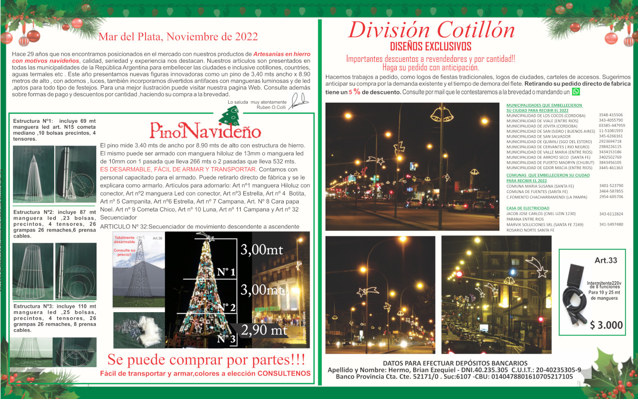 Contamos con un plantel de jovenes que trabajan día a día realizando los mejores productos para adornar,Countries, Cabañas,Casas, Acceso a Ciudades, Estructuras de la Red Vial y todo lo que se imagine en una fecha tan especial como es la Navidad y el Año Nuevo.